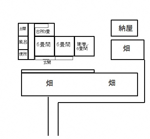 間取り:(1階)和室3部屋、台所、風呂、トイレ