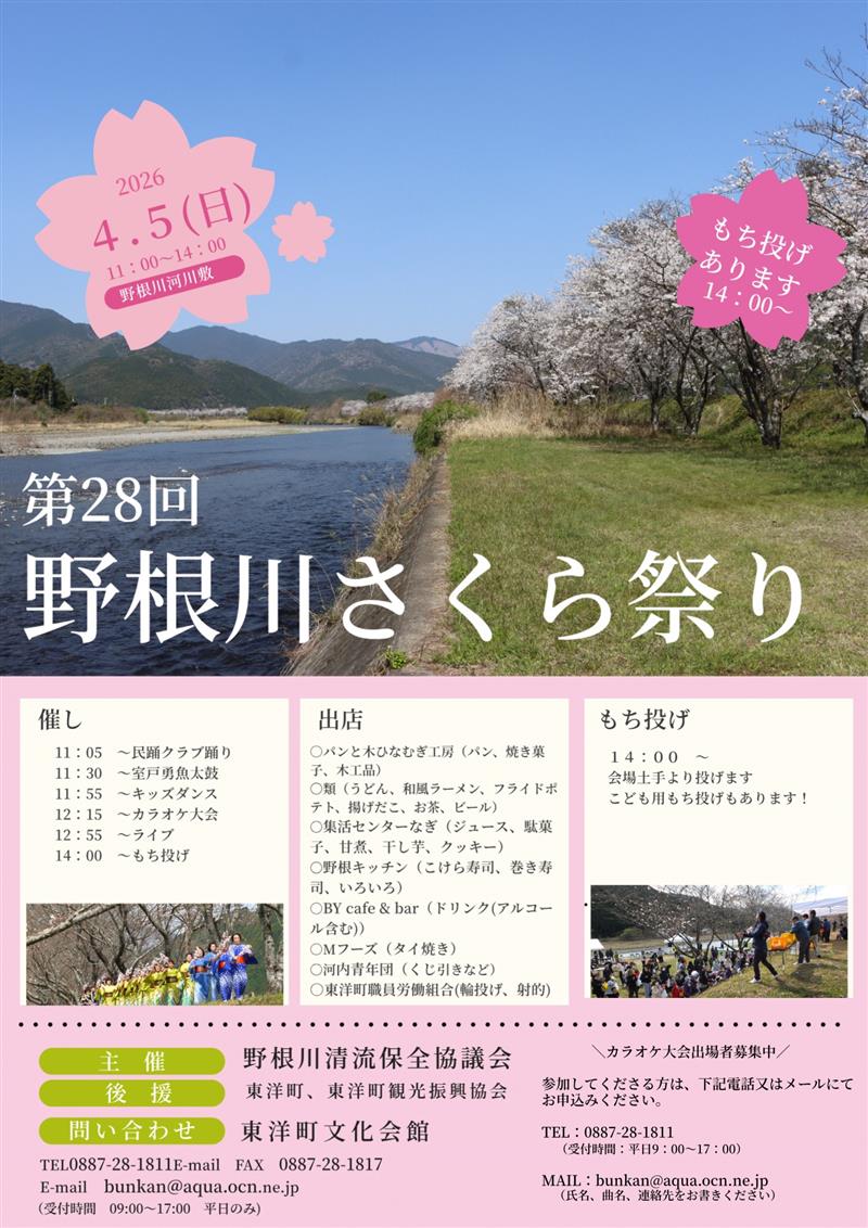第28回野根川さくら祭りの開催について